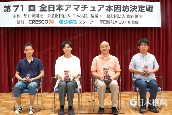 リーグ戦、トーナメント戦の結果、平岡聡さん(招待)が優勝を果たした。準優勝は齊山天彪さん(東京)、3位は夏冰さん(京都)、4位が小山光晶さん(東京)だった。