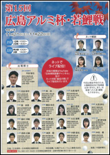 例年公開対局で行っております「広島アルミ杯・若鯉戦」本戦ですが、新型コロナ感染予防のため今年度は入室観戦、現地大盤解説会は誠に申し訳ございませんが中止といたしました。