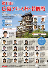 若手棋士の登竜門、第14回広島アルミ杯・若鯉戦本戦トーナメントがいよいよ11月23日(土)、24(日)に広島市で開催されます。