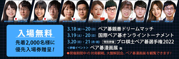 3/20(日)・21(月祝):<特別併催>プロ棋士ペア碁選手権2022 日本を代表するトッププロ棋士16ペアが出場!(対面対局) - 併催イベント