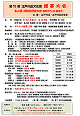 - 19路盤対局(級位戦Eは13路盤対局)、スイス方式準用(名人戦)