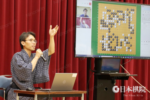 株式会社パンダネットが提供する便利機能(碁盤と使用者の映像を同時に映し出す機能)を、鶴山淳志八段と林漢傑八段が紹介。大会やイベントなどで活用されている。