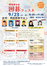 - お申込みは下記メールにて受付中です。お名前(フルネーム)と指導碁(60分か30分)の希望をご記入の上、お送りください。なお、指導碁には定員がありますのでご了承ください。関西総本部棋士会からの返信をもちまして予約完了となります。