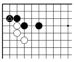 この黒△の手は囲碁用語で何と呼びますか。A〜Dの中から1つ選んでください。