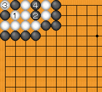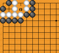 死活例2 手入れ不要 黒の二子、白の八子はともに「活き石」で、第八条により「セキ石」。黒はaに打ち込こむ手入れ不要である。 (死活例 2) 黒二子の「活き石」の理由1図、黒二子は取られるが、取られない石2、4が生じうる。 (1図) 前へ戻る 次へ進む