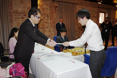 井山が立会人の山城宏九段に封じ手を渡して1日目が終了した
