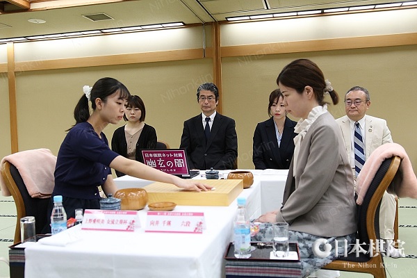 3連覇を目指す上野愛咲美女流立葵杯に向井千瑛六段が挑戦する第11期会津中央病院・女流立葵杯(主催:日本棋院、後援:毎日新聞社、協賛:一般財団法人温知会、協力:関西棋院、福島民報社、日本棋院福島県支部連合会)挑戦手合三番勝負の第1局が6月15日(土)に福島県会津若松市 「今昔亭」で開始した。