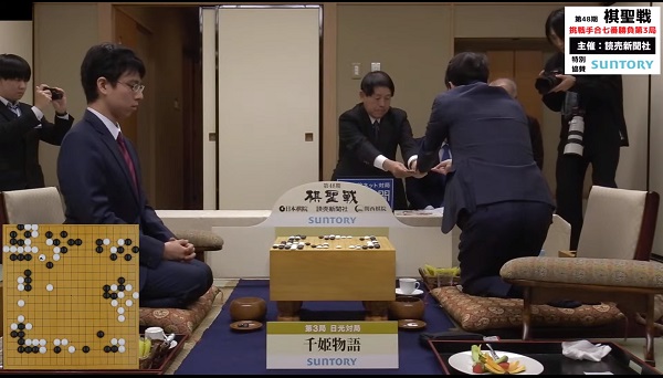 囲碁界最高位の棋戦「棋聖」3連覇を目指す一力遼棋聖に井山裕太王座が挑戦する 第48期棋聖戦挑戦手合七番勝負 (主催:読売新聞社・日本棋院・関西棋院、特別協賛:サントリーホールディングス) 第3局が1月27日(土)に栃木県日光市「日光千姫物語」にて開始、黒番の井山が91手目を封じて1日目が終了した。