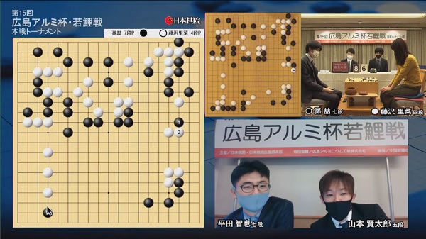 準決勝で敗退した前年優勝の平田 山本賢太郎五段と出演(画像:日本棋院囲碁チャンネル)