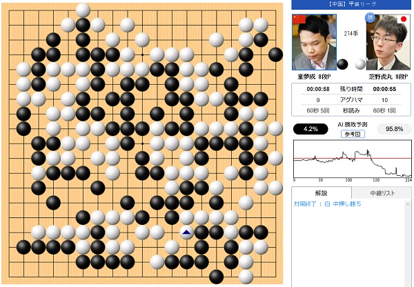 - 「最初から形勢判断が難しい碁だった。はっきり悪い場面もあった。(勝てたことの感想は?)せっかくチームに選んでいただいて1回も勝てないと申し訳ない。素直にうれしい。」
