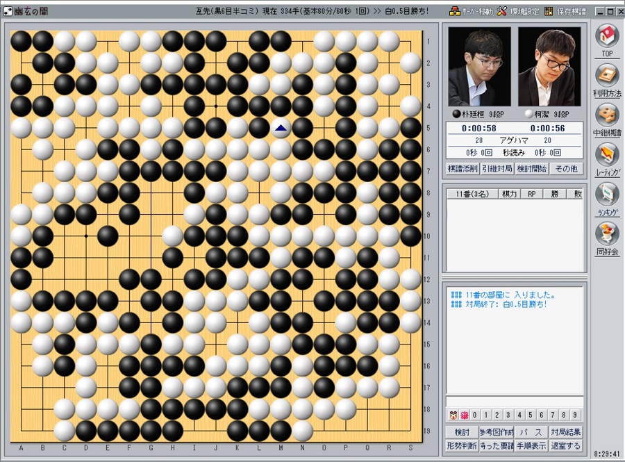 この対局の模様は日本棋院ネット対局「幽玄の間」手順ライブ中継いたしました。