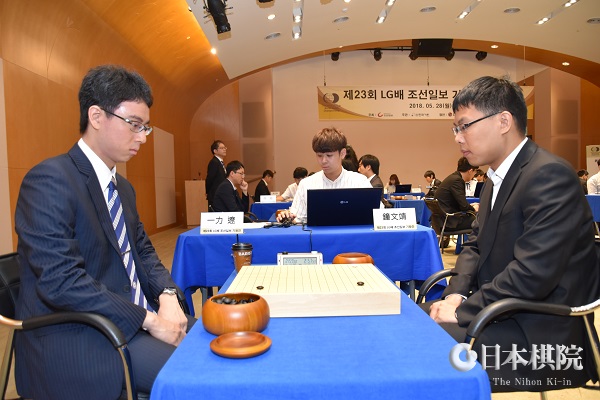 △一力遼八段(日本) 中押し 鐘文靖六段(中国)