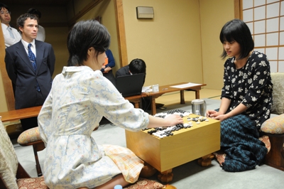 向井千瑛女流本因坊に藤沢里菜会津中央病院杯が挑戦している第33期女流本因坊戦【共同通信社】五番勝負第2局が10月17日に東京・市ヶ谷の日本棋院で行われた。