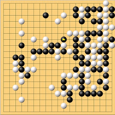 井山裕太碁聖に河野臨九段が挑戦する第39期碁聖戦挑戦手合五番勝負【新聞囲碁連盟】の第1局が26日に宮城郡松島町の「松島一の坊」で行われた。結果は129手まで黒番の河野が中押し勝ちをおさめ、タイトル奪取へ向けてさい先のよいスタートをきった。終局は18時8分、持ち時間4時間のうち残り時間は黒番の河野が12分、白番の井山が1分だった。
