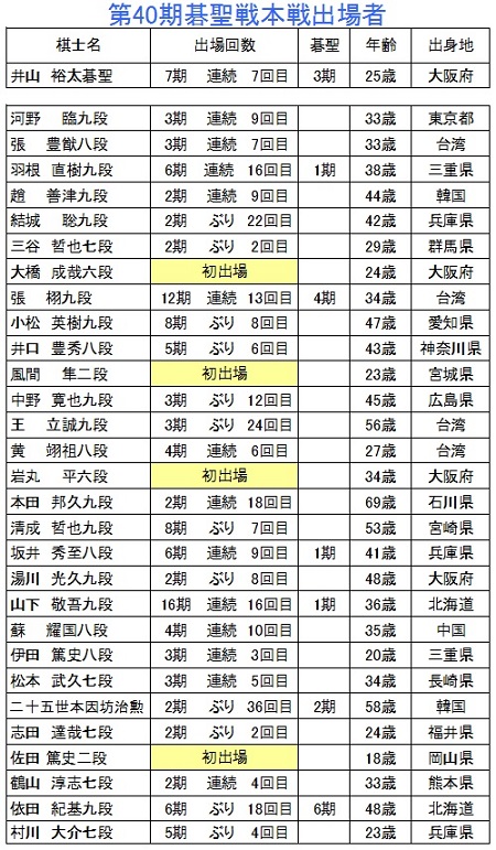 Tweet 2014年12月10日 棋戦情報 井山裕太碁聖への挑戦権を争う第40期碁聖戦本戦トーナメント【主催:新聞囲碁連盟】が11日から始まります。 11日は羽根直樹九段―趙善津九段、山下敬吾九段―井口豊秀八段の2局が行われます。 Tweet 棋戦カテゴリのトップページはこちら 一覧に戻る 前の記事【12月第1週】主な対局結果 次の記事男子団体黒星発進、奥田は2回戦へ【第4回スポーツアコードワールドマインドゲームズ】