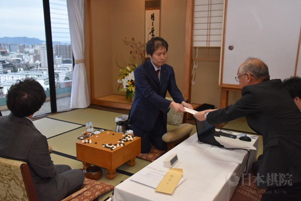 1日目は白番の高尾が86手目を封じて打ちかけとなった。封じたのは17時31分、持時間8時間のうち消費時間は黒番の井山が3時間46分、白番の高尾が3時間45分だった。この対局は22日(金)9時に再開され、同日夜に終局の見込み。
