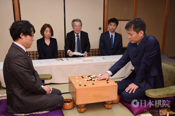 1日目は、高尾が68手目を封じて、打ち掛けとなった。封じ手時刻は17時30分。1日目の消費時間は黒番の井山4時間0分、白番の高尾が3時間30分。2日目となる17日は、9時から対局が再開された。立会の二十四世本因坊秀芳が封じ手を読み上げ、高尾が11の八「ハネ」を着手した。左上隅から始まった戦いが続いている。