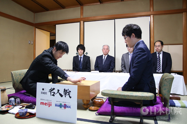 Tweet 2018年10月22日 棋戦情報 井山裕太名人に張栩九段が挑戦する第43期名人戦(主催:朝日新聞社)挑戦手合七番勝負第6局が、10月22日に、静岡県熱海市「あたみ石亭」で始まった。井山名人の3勝2敗で迎えた本対局、井山が防衛を決めるか、張が最終局に決着を持ち越すか、張の先番で明日23日夕刻に決着する見込みである。 初手を右上隅星に打ち下ろす張 対局の詳細については「週刊碁」およびネット対局「幽玄の間」にてお楽しみください。 Tweet 棋戦カテゴリのトップページはこちら 一覧に戻る 前の記事井山が先勝【第44期天元戦五番勝負・第1局】 次の記事【11月第1週】「幽玄の間」中継予定