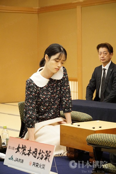 定刻9時に開始しニギリの結果、星合志保四段の黒番(先手)でシリーズ開幕となった。
