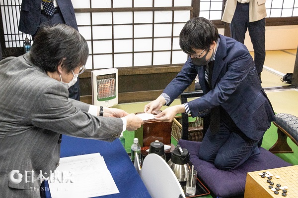 封じ手時刻は16時34分。消費時間は持ち時間8時間のうち、黒番の河野が4時間11分、白番の井山が3時間19分だった。この対局は5日(金)9時に再開され同日夜に終局の見込み。