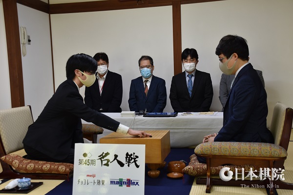 定刻の9時に立会人の山城宏九段の合図により対局が始まった。持ち時間は各8時間。1日目は本日夕刻に封じ手による打ち掛けとなり24日(木)に2日目が打ち継がれる。