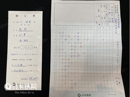 囲碁界最高位の棋戦「棋聖」の前人未到10連覇を目指す井山裕太棋聖に一力遼九段が挑戦する 第46期棋聖戦挑戦手合七番勝負 (主催:読売新聞社・日本棋院・関西棋院) 第4局が山梨県甲府市「常磐ホテル」で再開した。9時に対局者によって昨日の手順が再現された後、封じ手が開封された。一力の封じた61手目は2-二のハネ。本対局は本日夕刻に終局する見込み。