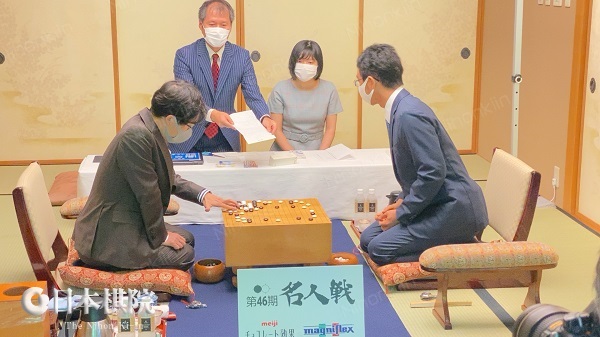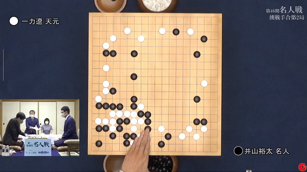 1日目の消費時間は持ち時間各8時間のうち、井山が4時間14分、一力が3時間20分。この対局は本日夜に終局の見込み。