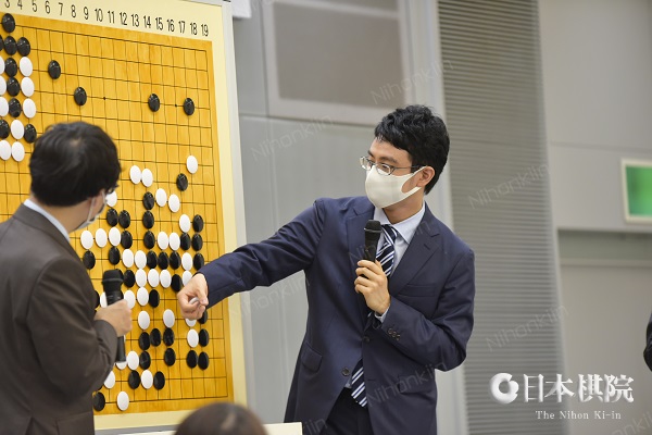 - 「(白94と切ったあとノビた手について)黒から割いてくる手を考えてなくて、実戦よりもう少し良い図があったかもしれない」 「その後の攻め合いも読めていなかったし、最後は一手負けの図しか見えなかった。中盤正しく打てない所が多かったので、また良い碁が打てるように頑張りたい」