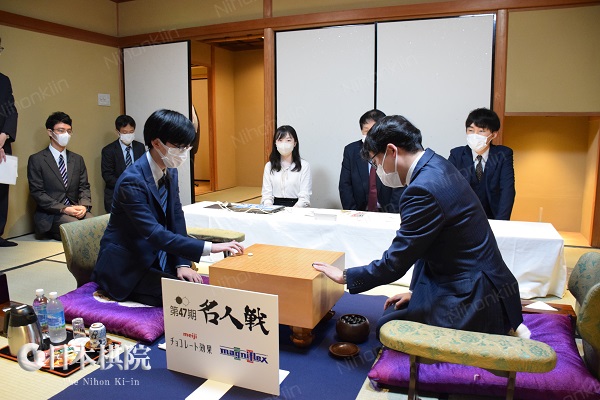 3連覇を目指す井山裕太名人に芝野虎丸九段が挑戦する 第47期名人戦挑戦手合七番勝負(主催:朝日新聞社・日本棋院・関西棋院、協賛:株式会社明治、マニフレックス)の第6局が10月24日(月)に静岡県熱海市「あたみ石亭」で小林光一名誉名人の立会の下、定刻9時に対局開始した。