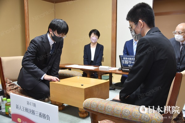 第47期新人王戦決勝三番勝負 (主催:しんぶん赤旗・日本棋院・関西棋院) 第2局が9月30日(金)東京都千代田区「日本棋院東京本院」で定刻10時に対局開始した。