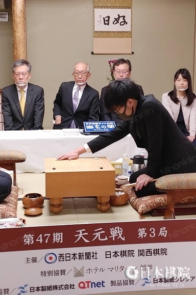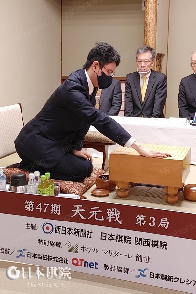 第3局が11月25日(木)定刻9時に立会人の坂口隆三九段の合図の後、先番の一力が右上隅小目に着手した。第1局は序盤でリードした関が、第2局は中盤で盛り返した一力がそれぞれ制し、本局の勝者がタイトルまであと1勝となる。対局場は福岡県久留米市「ホテルマリターレ創世 久留米」、持ち時間は各3時間で本日夕刻に終局の見込み。