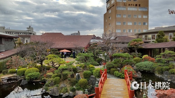 アクセスの良い都市部に位置し風雅な庭園と茶室を備える