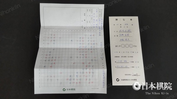 一力が封じた117手目は「15-二」カケツギ。対局場は神奈川県箱根町の「ホテル花月園」で、この対局は本日夕刻に終局となる。