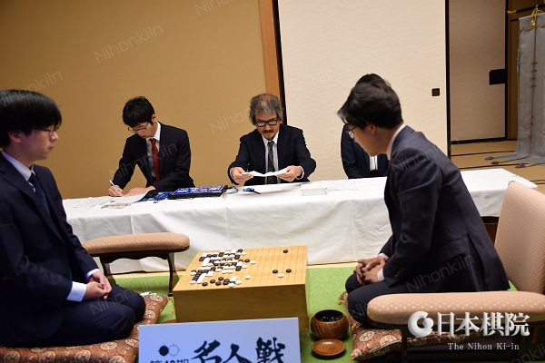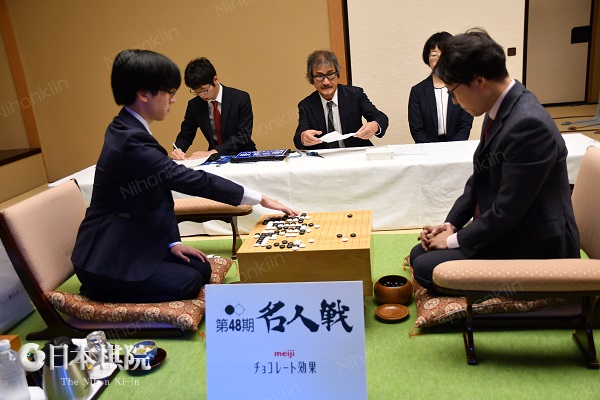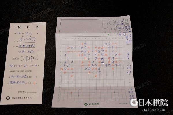 名人戦2連覇を目指す芝野虎丸名人に井山裕太王座が挑戦する 第48期名人戦挑戦手合七番勝負第1局 (主催:朝日新聞社・日本棋院・関西棋院、協賛:株式会社明治、協力:藤田観光) 第1局2日目が8月25日(金)の9時に再開し立会人の趙治勲名誉名人によって封じ手が開封された。