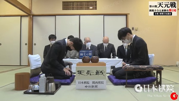 連覇を目指す関航太郎天元に伊田篤史九段が挑戦する 第48期天元戦挑戦手合五番勝負(主催:新聞三社連合・日本棋院・関西棋院)の第1局が10月3日(月)に三重県伊勢市「伊勢かぐらばリゾート 千の杜」で羽根泰正九段の立会の下、定刻9時に対局開始した。
