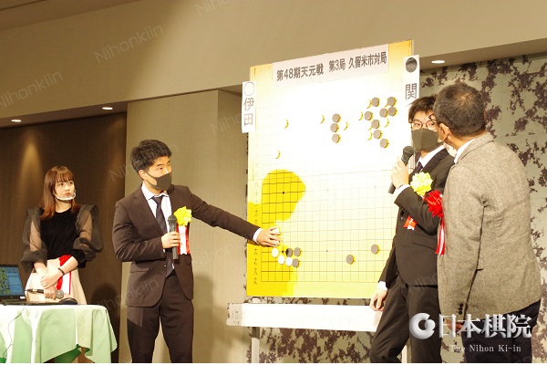 連覇を目指す関航太郎天元に伊田篤史九段が挑戦する 第48期天元戦挑戦手合五番勝負(主催:新聞三社連合・日本棋院・関西棋院)の第3局が11月14日(月)に福岡県久留米市「ホテルマリターレ創世久留米」で打たれ、白番の伊田篤史九段が202手までで中押し勝ちをおさめ2勝1敗、これで天元奪取まであと1勝とした。終局時刻は16時57分。残り時間は両者とも1分だった。次の第4局は12月1日(木)兵庫県洲本市「ホテルニューアワジ」で行われる。