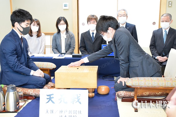 連覇を目指す関航太郎天元に伊田篤史九段が挑戦する 第48期天元戦挑戦手合五番勝負(主催:神戸新聞社(新聞三社連合)・日本棋院・関西棋院)の第4局が12月1日(木)に兵庫県洲本市「ホテルニューアワジ」で山田規三生九段の立会の下、定刻9時に対局開始した。