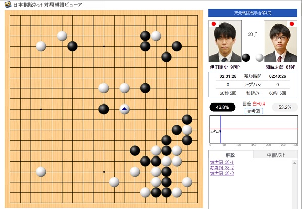 また詳細・解説については、天元戦掲載紙各紙( 北海道新聞・ 中日新聞・ 東京新聞・ 西日本新聞・ 神戸新聞・ 徳島新聞)、 毎週月曜日発売の「週刊碁」、 毎月20日発売の月刊誌「碁ワールド」等にてご覧いただけます。