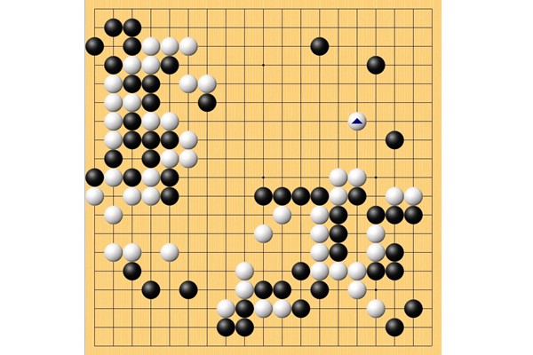 井山王座が封じた102手目は15-七。この対局は本日夕刻に終局となる。