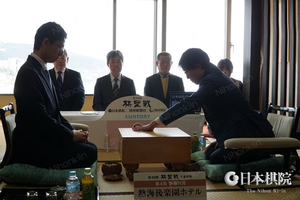囲碁界最高位の棋戦「棋聖」4連覇を目指す一力遼棋聖に、棋聖通算10期目を狙う井山裕太王座が挑戦する第49期棋聖戦挑戦手合七番勝負(主催:読売新聞社・日本棋院・関西棋院、特別協賛:サントリーホールディングス) 第4局が熱海後楽園ホテルで2月12日(水) の午前9時に開始した。