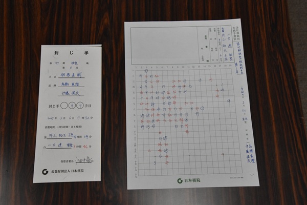 に開始し、2日目となる3月7日(金)は午前9時に対局者によって昨日の手順が再現された後、立会の羽根直樹九段によって封じ手が読み上げられた。井山王座が封じた99手目は13-八アテ。この対局は本日夕刻に終局となる。