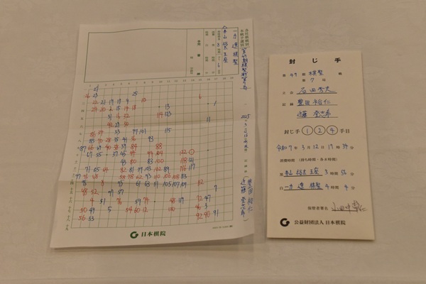 一力棋聖が封じた124手目は14-十。この対局は本日夕刻に終局となる。