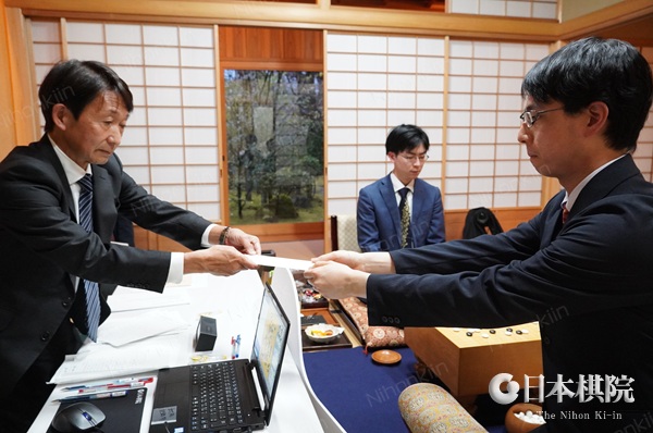 持ち時間各8時間のうち消費時間は一力棋聖が4時間6分、芝野十段が3時間54分。この対局は明日の午前9時に同所で対局再開となる。