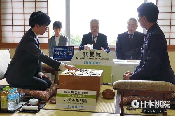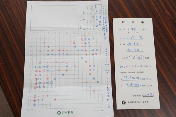 に開始し、2日目となる3月26日(木)は午前9時に対局者によって昨日の手順が再現された後、立会の山城宏九段によって封じ手が読み上げられた。