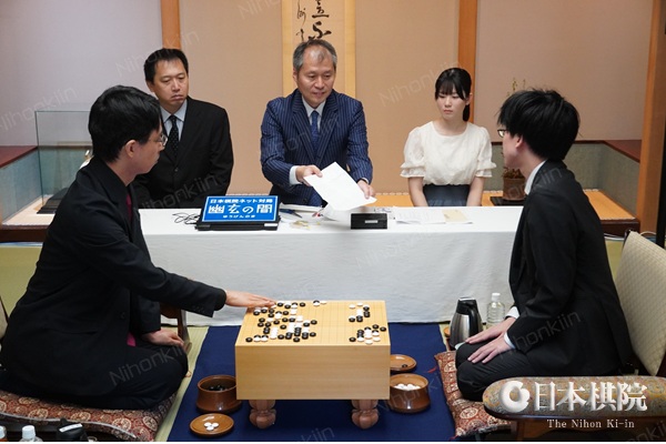 8月27日(水)に対局再開した。定刻の午前9時に昨日の手順が対局者によって再現された後、立会人の高尾紳路九段が封じ手を読み上げた。一力名人が封じた101手目は3-十六。