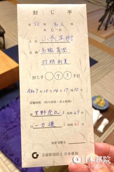 が10月14日(火)愛知県田原市「角上楼」で打たれ、芝野が73手目を封じて1日目が終了した。明日の午前9時に同所で対局再開となる。