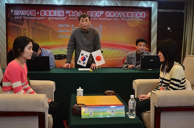 日本、中国、韓国各チーム女流棋士5人による勝ち抜き戦、第5回黄竜士双登杯世界女子囲碁団体選手権(中国江蘇省姜堰市)の第3戦が3月3日に行われた。