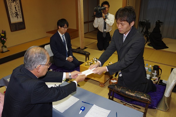 1日目は白番の高尾が58手目を封じて打ちかけとなった。封じ手は17時30分、持時間8時間のうち消費時間は黒番の井山が3時間28分、白番の高尾が4時間2分だった。この対局は6日9時に再開され、同日夜に終局の見込み。