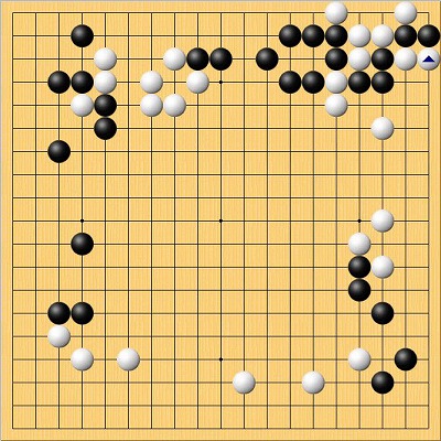 【名人戦第3局封じ手の場面】 黒:河野臨九段 白:井山裕太名人