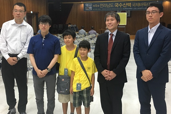 日本から唯一こども大会に参加していた大山兄弟。参加棋士と記念写真